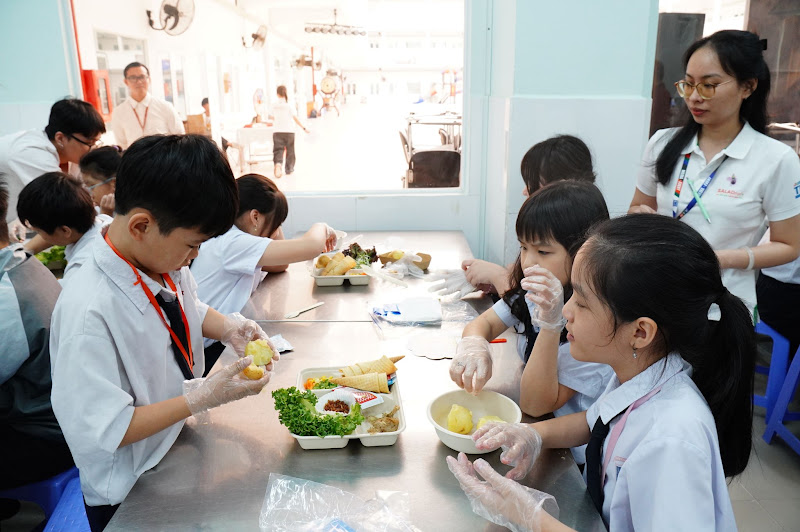 Tương tự các buổi workshop trước, Salad First tiếp tục triển khai hoạt động trải nghiệm chế biến món “Potatoes Salad Sandwich” dành cho học sinh. Dưới sự hướng dẫn của ban tổ chức, các em được tự do lựa chọn nguyên liệu, trực tiếp tham gia chế biến và cảm nhận hương vị món salad theo cách riêng.