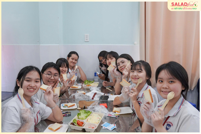 Thông qua hoạt động thực hành này, việc tiếp cận và lựa chọn rau xanh trở nên gần gũi và thú vị hơn. Điều này thể hiện rõ ở nhóm bạn nữ lớp 9D1 khi tham gia làm món salad; các bạn đều rất hào hứng và tích cực. Một thành viên trong nhóm chia sẻ: “Em rất thích workshop làm Salad First vì rất vui, giúp em được sáng tạo và cảm thấy việc ăn rau trở nên bổ ích hơn”