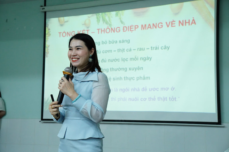 Từ những chia sẻ thực tế này, diễn giả đã trực tiếp phân tích nguyên nhân và đưa ra các hướng dẫn cụ thể về cách xây dựng chế độ ăn uống khoa học, bảo đảm cân bằng dinh dưỡng và phù hợp với đặc điểm lứa tuổi vị thành niên.